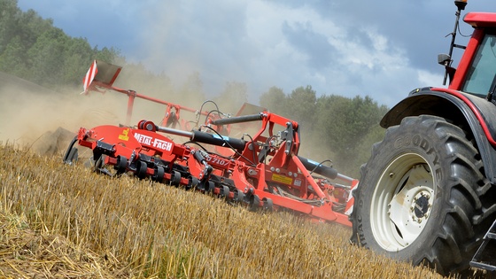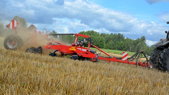 Эта уникальная борона способна быстро и надежно обрабатывать землю. Два мощных ряда дисков шириной 4,5 идеально подойдут для большинства работ. Рабочая глубина всех 36 дисков настраивается от 5 до 18 сантиметров. Это мощная борона требует 150-200 лошадиных сил, что не так много, относительно ее размеров.
